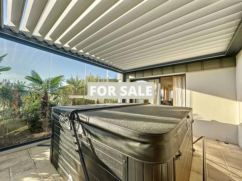 - Ground floor: A large entrance hall with built-in wardrobes, an exceptional 69 m² living space with a lounge featuring a built-in bar and a large living room, a 32 m² heated bioclimatic pergola with breathtaking sea views, a spa area with a covered jacuzzi under a bioclimatic pergola, a 22 m² dining room, a high-end fitted kitchen with a large central island, a fitted and equipped utility room, a 23 m² custom-designed office with an en-suite shower room, and a WC.