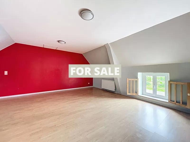- Ground floor: entrance hall, living room with wood-burning stove (room of approximately 70 m2), fitted kitchen, one bedroom, bathroom (bath & walk-in shower), separate wall-mounted toilet, summer lounge, storeroom and adjoining garage.