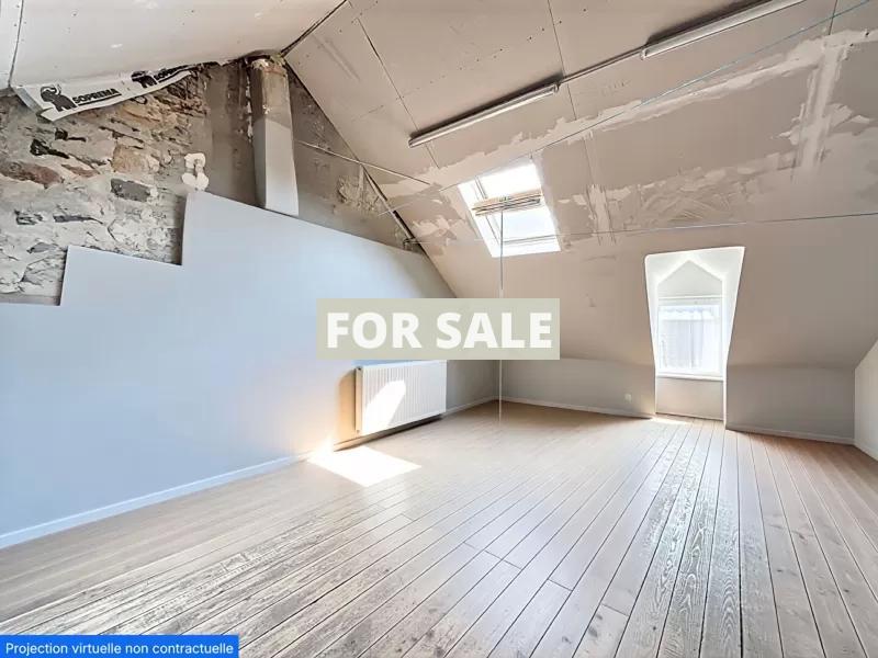 En Francais... Au coeur du bourg, a 850 m de la plage et a proximite des commerces, maison de bourg des annees 30 de 99 m2 comportant 4 chambres avec cour, garage, jardin et verger non attenants. Cette maison se compose de la facon suivante : . En rez-de-chaussee : cuisine amenagee, ensemble salon/salle a manger, salle d'eau avec WC, buanderie. A l'etage : 4 chambres de 6.5 m2, 10 m2, 13.5 m2 et 18 m2. Grenier amenageable au-dessus de 18 m2 en surface habitable avec fenetre et velux.. Chauffage chaudiere electrique, huisseries mixte PVC double vitrage et bois simple vitrage, isolation par les murs et le toit, assainissement collectif. En exterieur : cour de 20 m2, garage 2 portes de 20 m2, un jardin a 30 m de la maison de 319 m2 avec vue mer, un verger de 287 m2 non attenant a 50 m de la maison.
