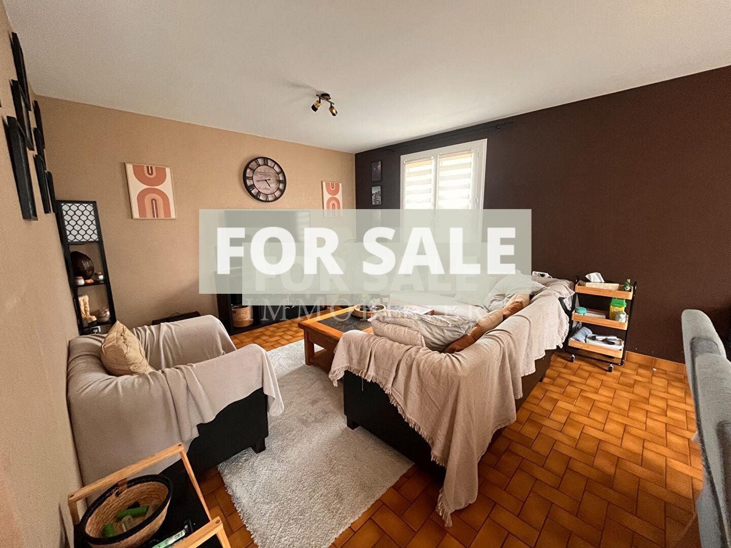 Offering 90 m² of living space, it is composed as follows: An entrance hall, a 30 m² living room, a separate fitted kitchen, a hallway leading to three bedrooms, a toilet, and a bathroom.