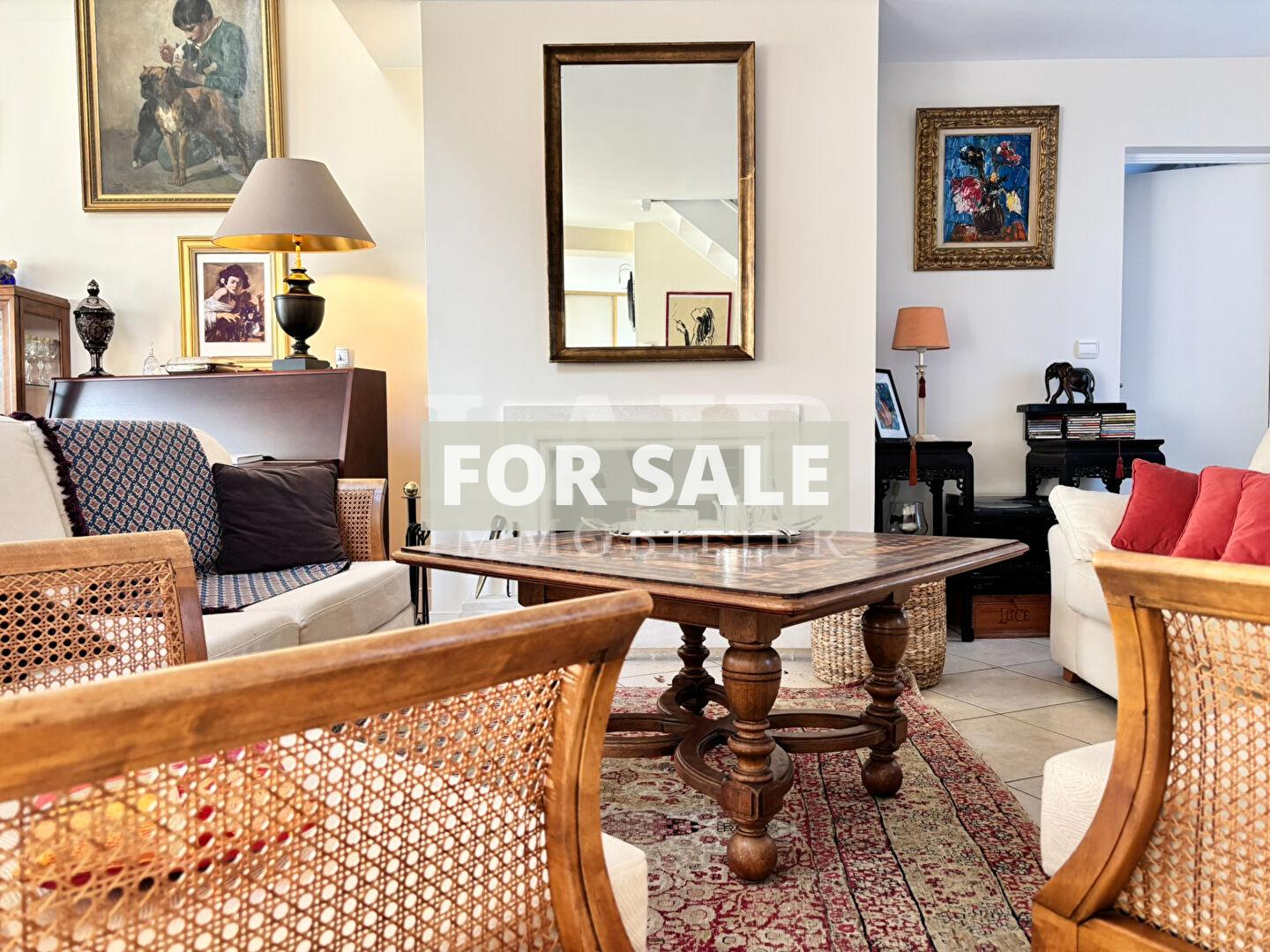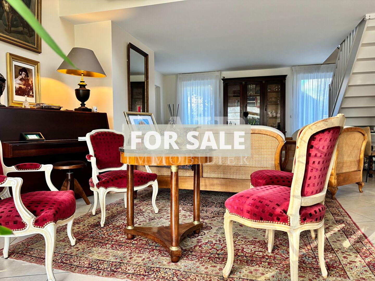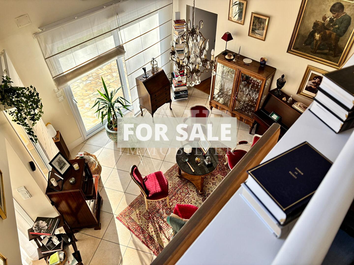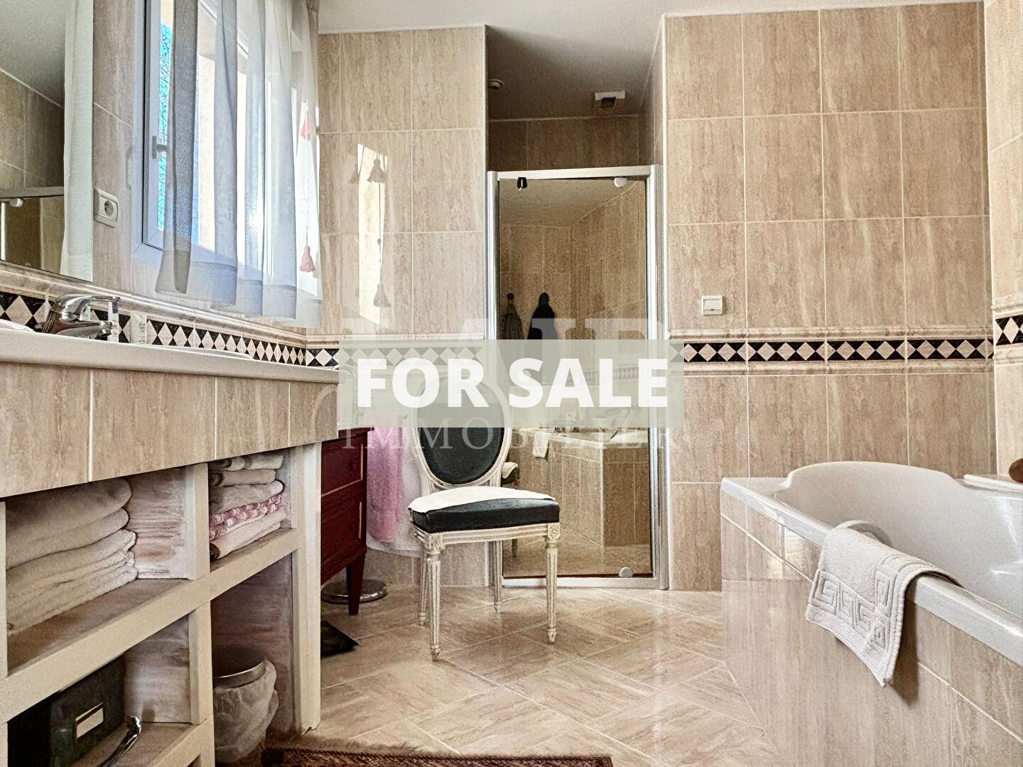 - Ground floor: Spacious and bright, it offers single-level living with an entrance hall with storage, opening onto a large living area comprising a fitted kitchen, a dining room opening onto a terrace (with two awnings), and a cathedral-ceilinged living room with a cozy fireplace. A beautiful master suite with a large dressing room, bathroom, and toilet completes this level, along with a laundry room and access to the garage.