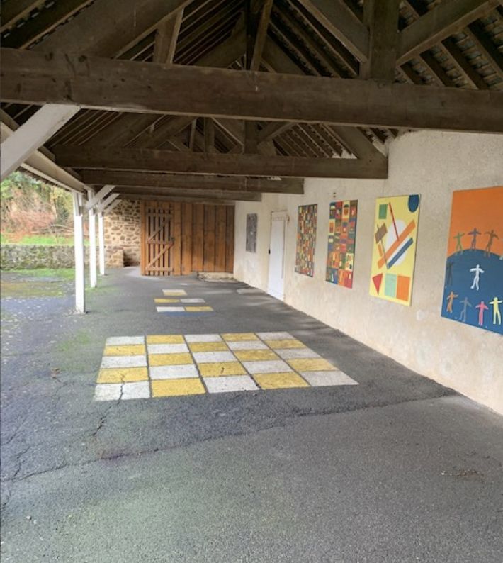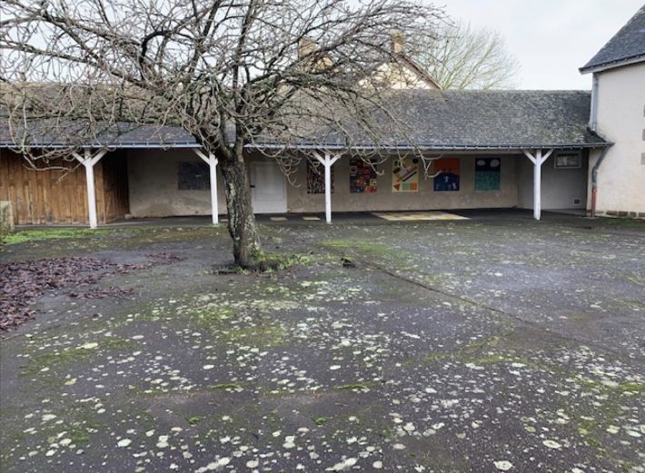 A former school covered in a slate roof and offering: garage (14.72m2), 2 classrooms (44.46 m2 each, one with a mezzanine (18m2)) and a dining hall (12m2). A stone house covered in slate containing: