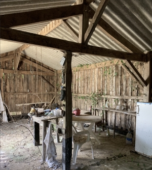 In the countryside, near the river, leisure land of 750m2 with a building of 51.84m2 and a second partially furnished building with kitchenette area (16.67m2), two rooms with beds (9.25m2, 7.77m2), a toilet.