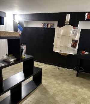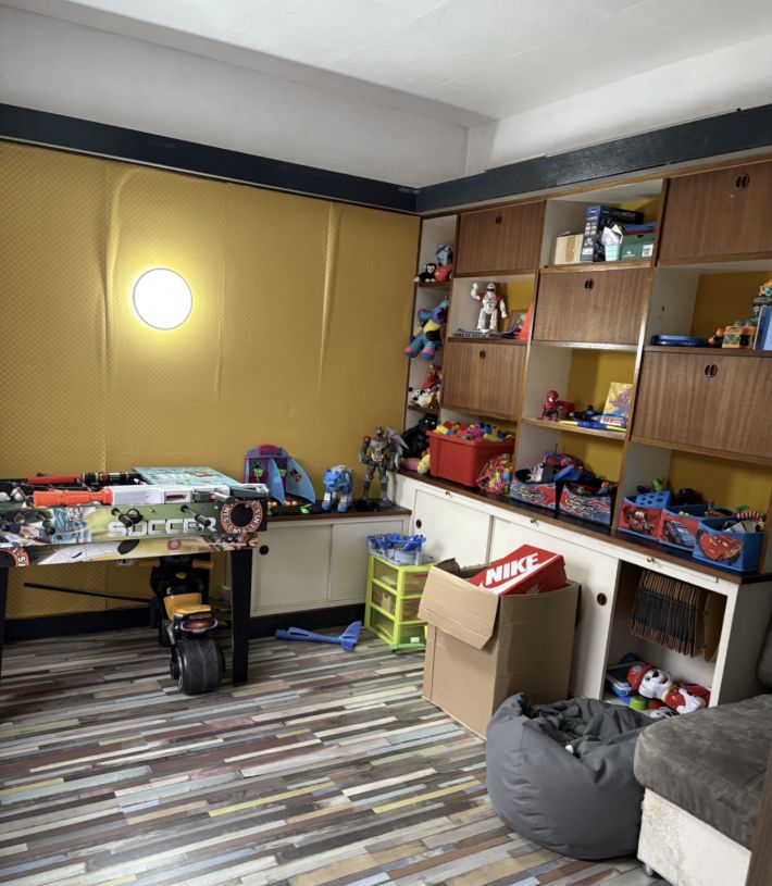 - Basement with finished space: hallway (3.98 m²), cellar (under the stairs), office (16.30 m²) with closet and utility room (thermodynamic water heater (6.16 m²)).