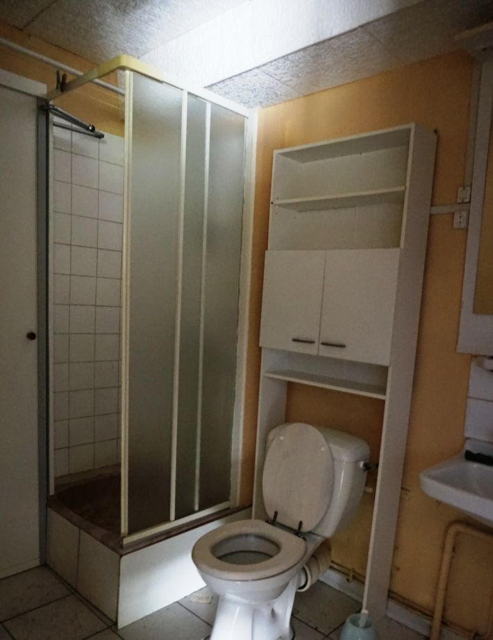 - Apartment 2: a living room (26.70 m²), a shower room, a room that could be used as a bedroom, and upstairs, two rooms (6.4 m² and 7.6 m²).