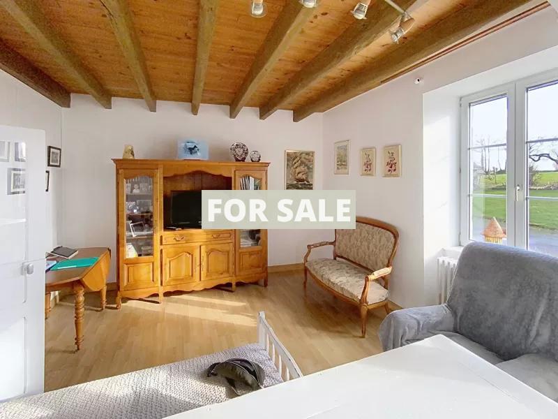Former Farmhouse with 120m2 living space, located in Fougerolles-du-Plessis, in a quiet and green environment, this pretty property is composed:
