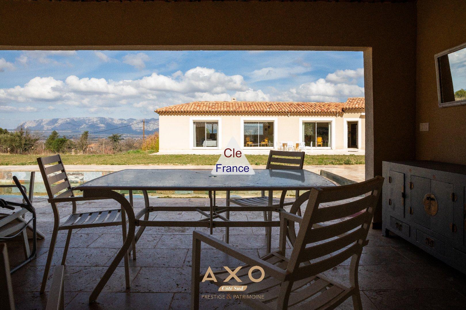 TRETS - ENSEMBLE IMMOBILIER - T8 - PISCINE - GARAGE - POOL HOUSE - VUE SAINTE VICTOIRE - À Trets, se dresse un véritable écrin immobilier de 220 m², où l'harmonie entre l'architecture et la nature crée un cadre de vie d'exception. Du haut de ce domaine, la vue imprenable sur la majestueuse montagne Sainte-Victoire et le Mont Aurélien se déploie, comme une toile vivante, changeant au fil des saisons et des lumières. Ce bien d'exception s'accompagne, en rez-de-chaussée, d'un appartement T3 de 70 m², parfait pour accueillir vos proches, offrir un havre de paix à vos invités ou même envisager une activité de location saisonnière, dans ce cadre idyllique. L'espace s'articule avec harmonie, offrant d'abord un appartement T3 indépendant de 70 m², véritable cocon de sérénité. Il se compose de deux chambres accueillantes, d'une pièce de vie baignée de lumière, agrémentée d'une cuisine ouverte, et d'une salle d'eau élégante. À l'extérieur, une belle terrasse et un jardin verdoyant viennent parfaire cet univers paisible, où chaque instant semble suspendu dans le temps. La maison principale s'élève ensuite, avec une vaste pièce de vie ouverte, propice à la convivialité, qui s'ouvre sur une terrasse magnifique et sur l'espace piscine, véritable invitation à la détente, se dévoile comme un écrin de fraîcheur. La Master room, intime et raffinée, est dotée d'un dressing spacieux et d'une salle d'eau élégante, tandis que deux autres chambres se partagent une salle d'eau moderne, tout en subtilité. Le pool house, avec son atmosphère chaleureuse, abrite une chambre intime avec sa salle d'eau, ainsi qu'une cuisine d'été couverte. La piscine, sublime joyau orné de pierres de Bali, se fond parfaitement dans ce tableau, offrant une vue imprenable sur les monts environnants, comme un miroir de la nature. Un double garage, discret mais fonctionnel, complète cette propriété d'exception, et la climatisation ajoute à ce lieu un confort sans égal. Un véritable havre de paix, où la beauté et la tranquillité se mêlent en parfaite harmonie.