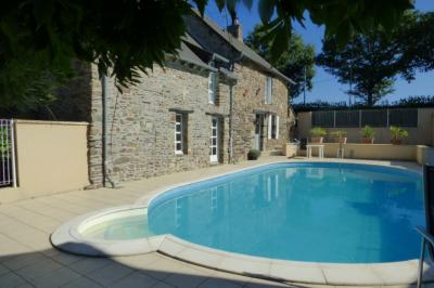 REDUCED in price - Charming family home with character, situated in a quiet setting near the famous Broceliande Forest and the small vibrant town of Ploermel. Kitchen/dining with fireplace and wood-burner, separate lounge, one master bedroom with en suite facility, two other bedrooms, a shower room & WC, plus another dormitory style bedroom on the top floor. Double garage and small hangar as outbuilding.