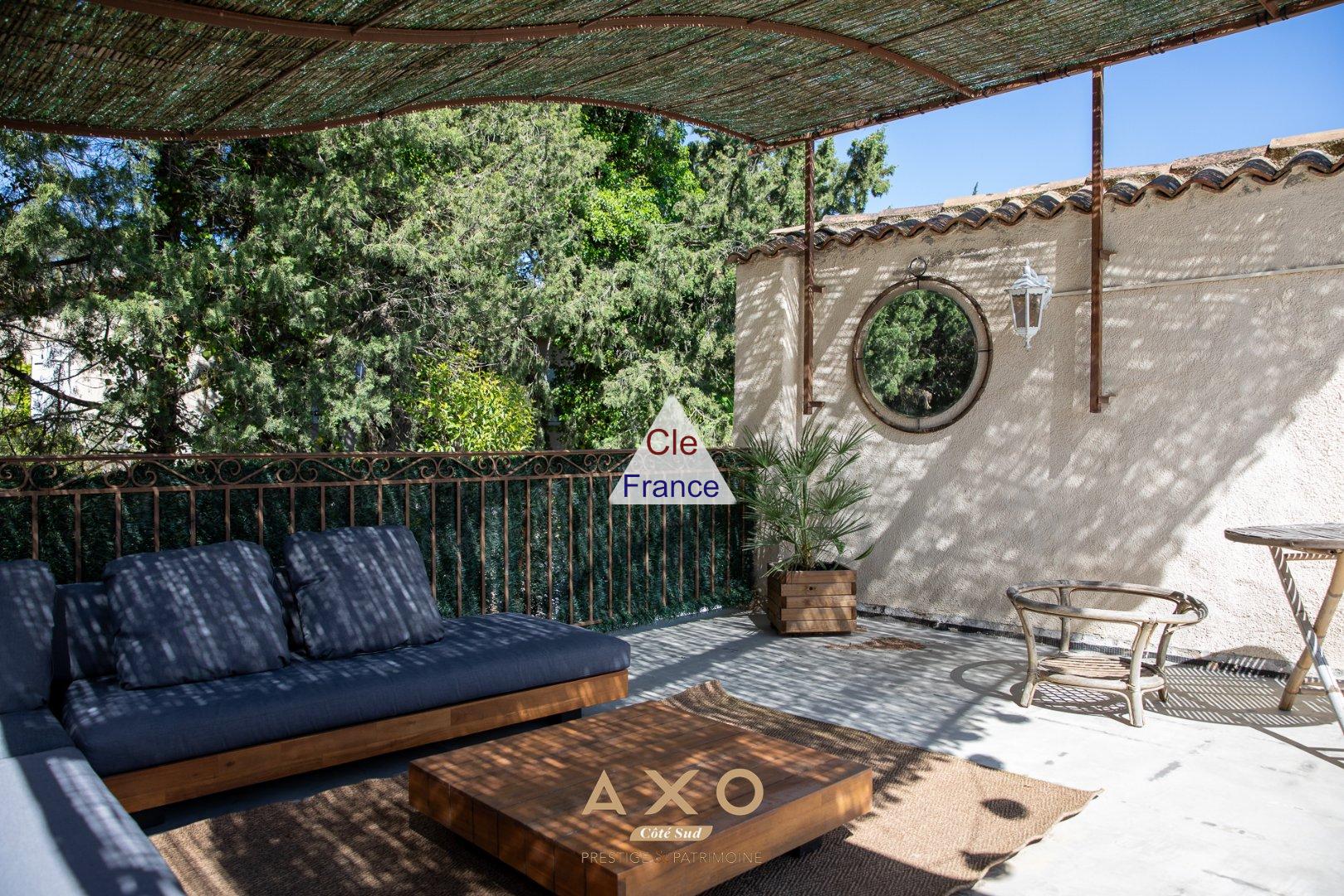 BOUC BEL AIR MAISON DE VILLE AVEC 2 TERRASSES 90 M² 380 000 Cette charmante maison de ville de 90 m² marie avec élégance le cachet de l\'ancien et le confort contemporain. Dès l\'entrée, un jardin intimiste donne le ton : authenticité et douceur de vivre. La pièce de vie de 28 m² avec sa belle cheminée centrale invite au quotidien convivial. La cuisine indépendante, habillée d\'un béton ciré de caractère, allie design et fonctionnalité. À l\'étage, deux chambres spacieuses et lumineuses offrent un confort certain, dont l\'une avec placards intégrés, terrasse privative et jacuzzi. Une salle de bain, une salle d\'eau ainsi qu\'une buanderie complètent les prestations. Les matériaux sélectionnés tomettes anciennes, double vitrage, climatisation réversible confèrent un charme singulier à l\'ensemble. Un escalier en fer forgé mène à une grande terrasse de 40 m², véritable espace de détente avec vue dégagée sur les toits et la campagne environnante. L\'ambiance y est propice à l\'installation d\'une petite piscine, pour profiter pleinement des beaux jours. Un bel équilibre entre volumes intérieurs et espaces extérieurs, idéal pour une vie douce et confortable. À seulement 15 minutes d\'Aix-en-Provence, de la gare TGV et de l\'aéroport de Marignane, cette maison se trouve au cur de Bouc Bel Air, à proximité immédiate des commodités. Un lieu de vie recherché, à découvrir sans tarder.