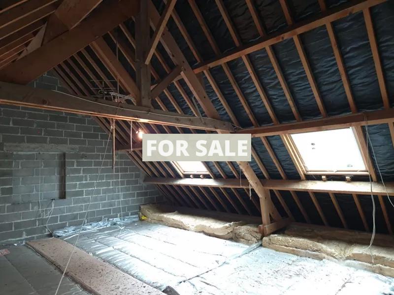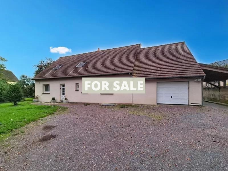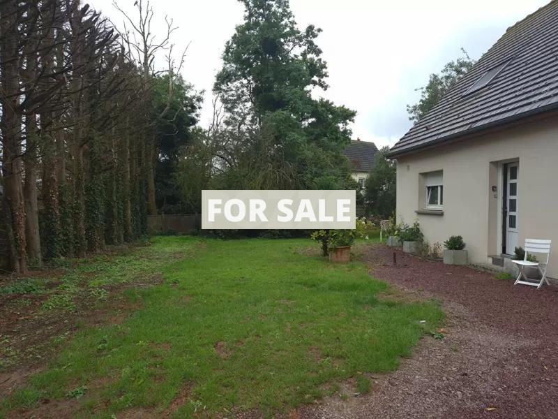 West of Caen, in a village with school and shops, single-storey detached house in a quiet area of 110 m2 with convertible attic space on a large plot of 1455 m2 comprising entrance hall, hallway, living room with wood stove of 35 m2, fitted kitchen of 14 m2, laundry room with window of 10 m2, 2 bedrooms of 10 and 12 m2, bathroom with toilet of 6 m2, separate toilet.