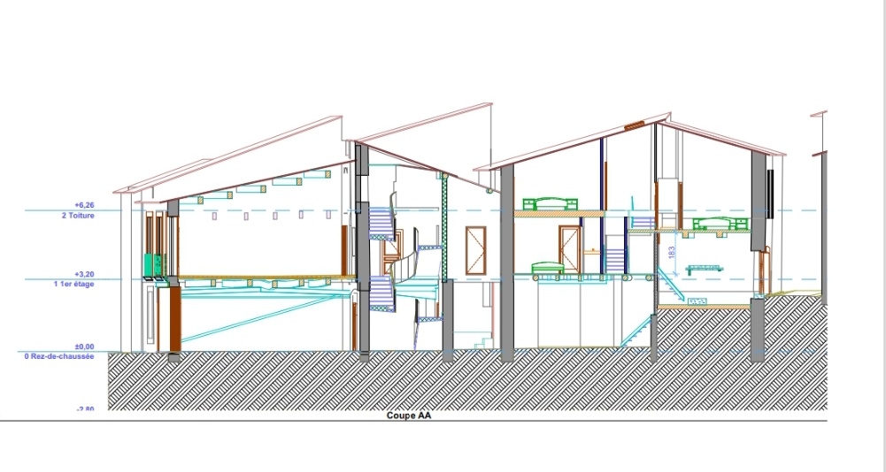 - 1st floor: Provision for access, terrace of approximately 13 m2, 150 m2 possible.
