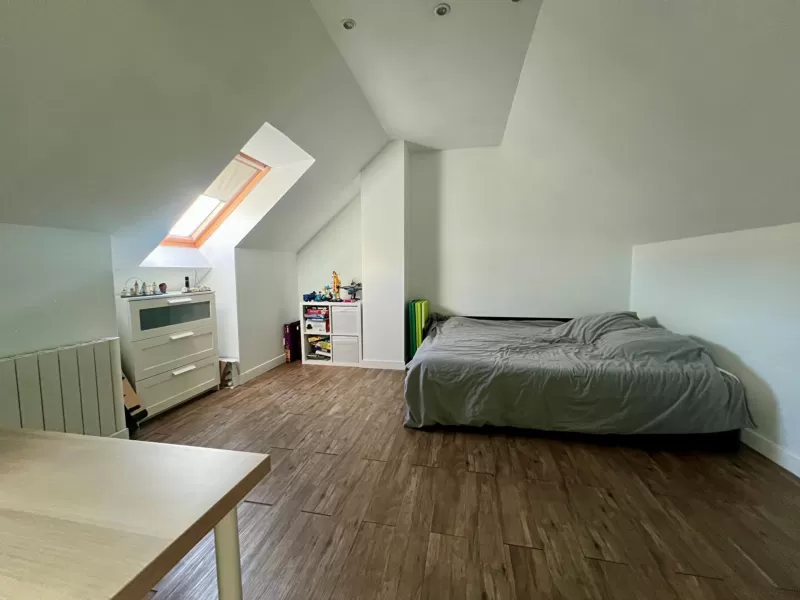 The bright living room offers a functional layout, and the recent construction ensures comfort and low maintenance. It also features a ground-floor bedroom with an en-suite bathroom that needs finishing. The property is ideal for a family seeking practical living spaces and a peaceful environment.