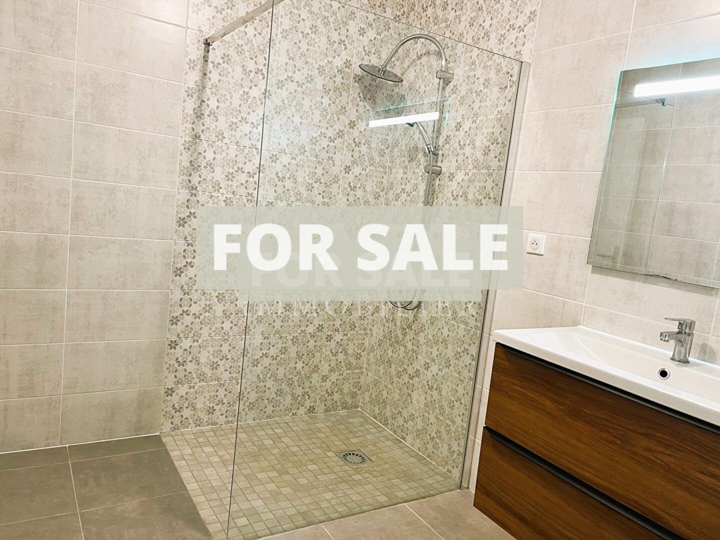 With a living area of 115 m², it comprises an entrance hall with a built-in wardrobe, a living room and lounge with an open-plan fitted and equipped kitchen leading onto the terrace.