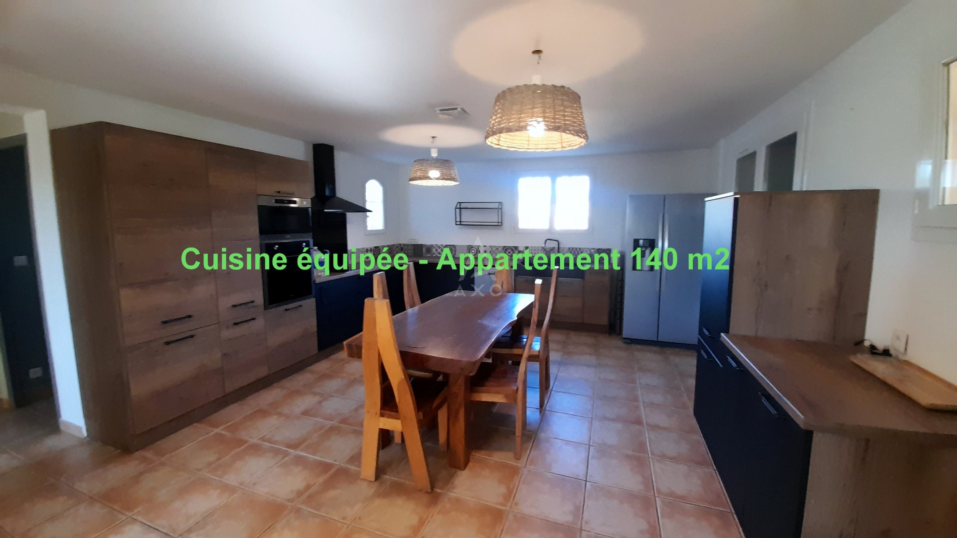 The property comprises two independent apartments on the same level, connected by a summer kitchen, and offers high-quality amenities. The total living area is 220 m².