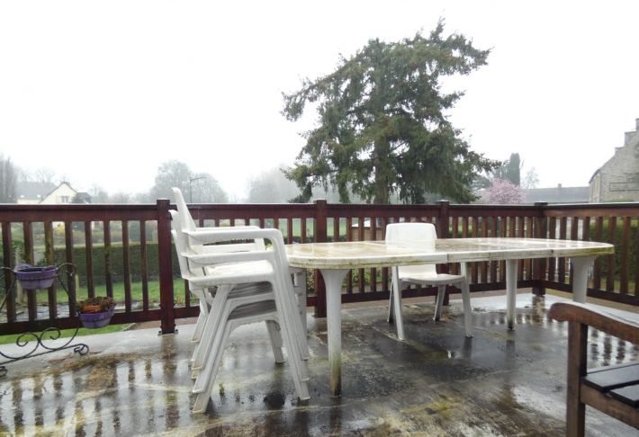 - Ground floor: entrance hall, living room, conservatory opening onto the terrace, fitted kitchen, WC.