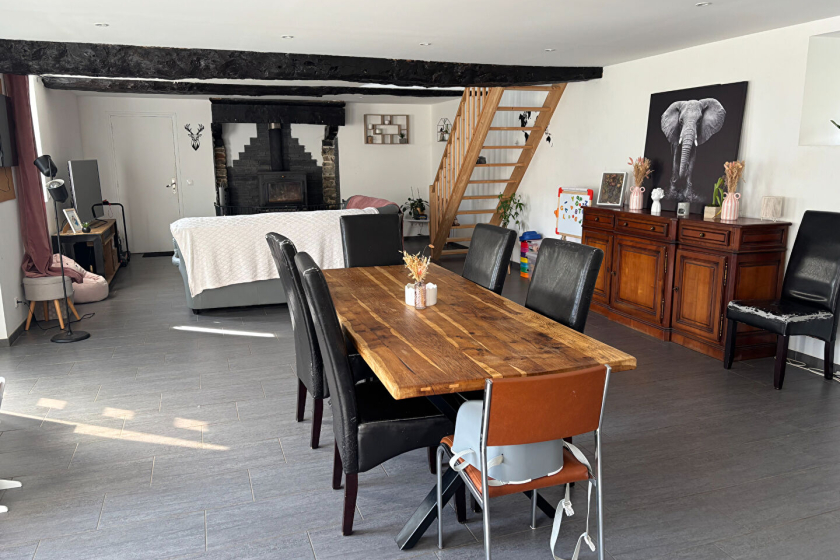- Ground floor: you will discover a large, bright living room with an open-plan fitted and equipped kitchen, complete with a fireplace and wood-burning stove, as well as a master bedroom with a private shower room, a separate WC and a laundry room.