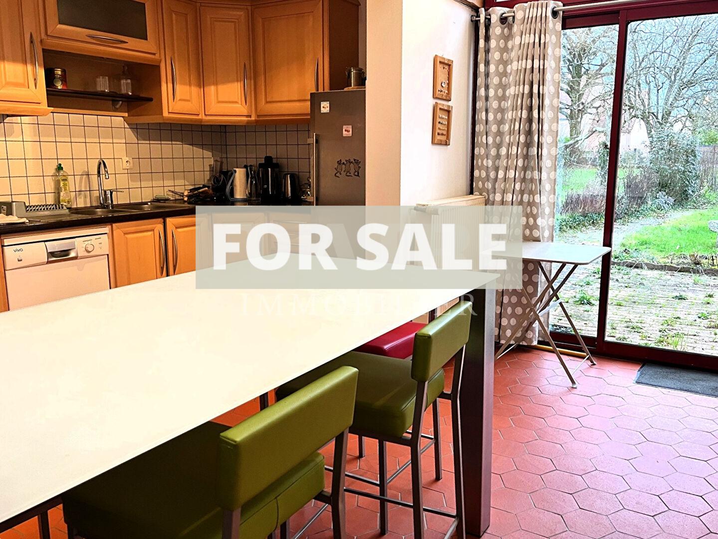 The property also features a terrace with an outbuilding used as a laundry room, an enclosed and landscaped garden, and a garage accessible from the rear.