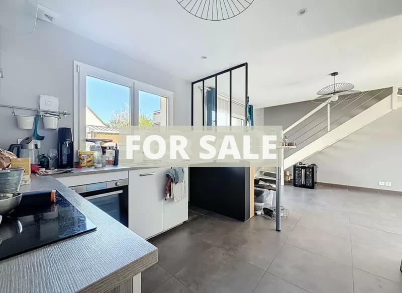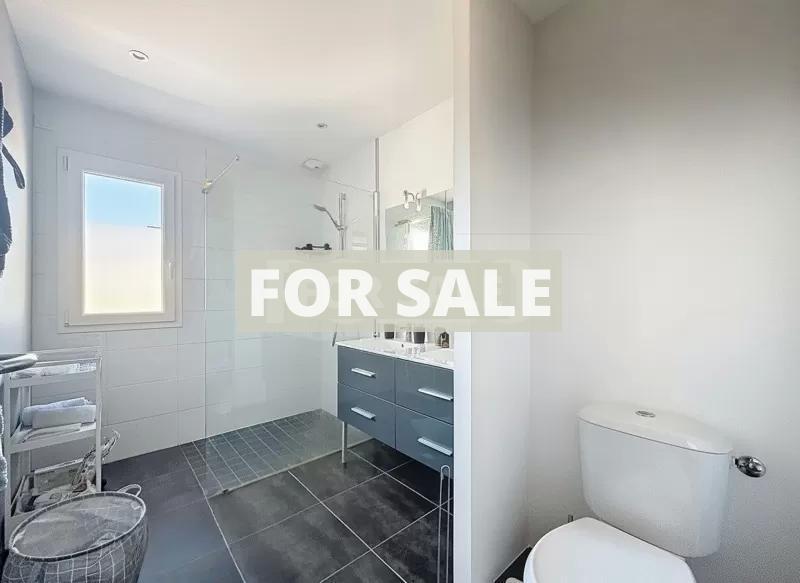 We offers you, in a quiet setting, close to shops, less than a km from the beach and a 10-minute walk from the train station, this recently built house (2017) comprising: