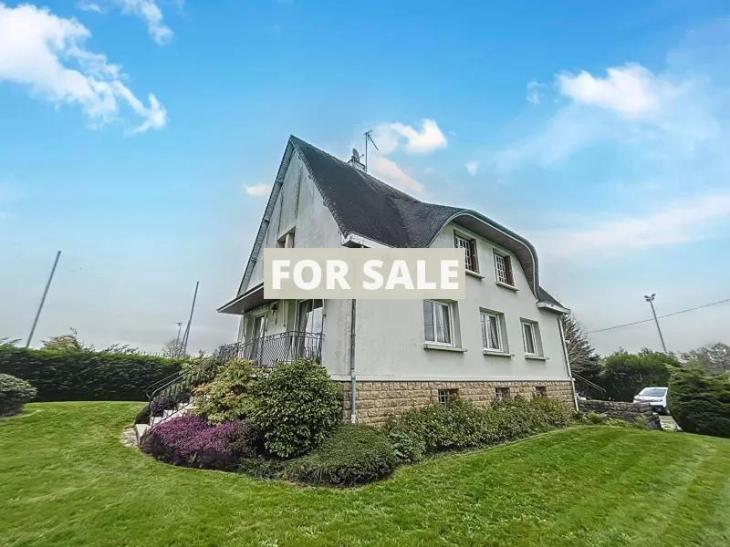 This 6-room house in a quiet area of ​​167 m2 living space  and 2,399 m2 of land in Vire (14500). It is an architect's house with 2 levels on a basement comprising;