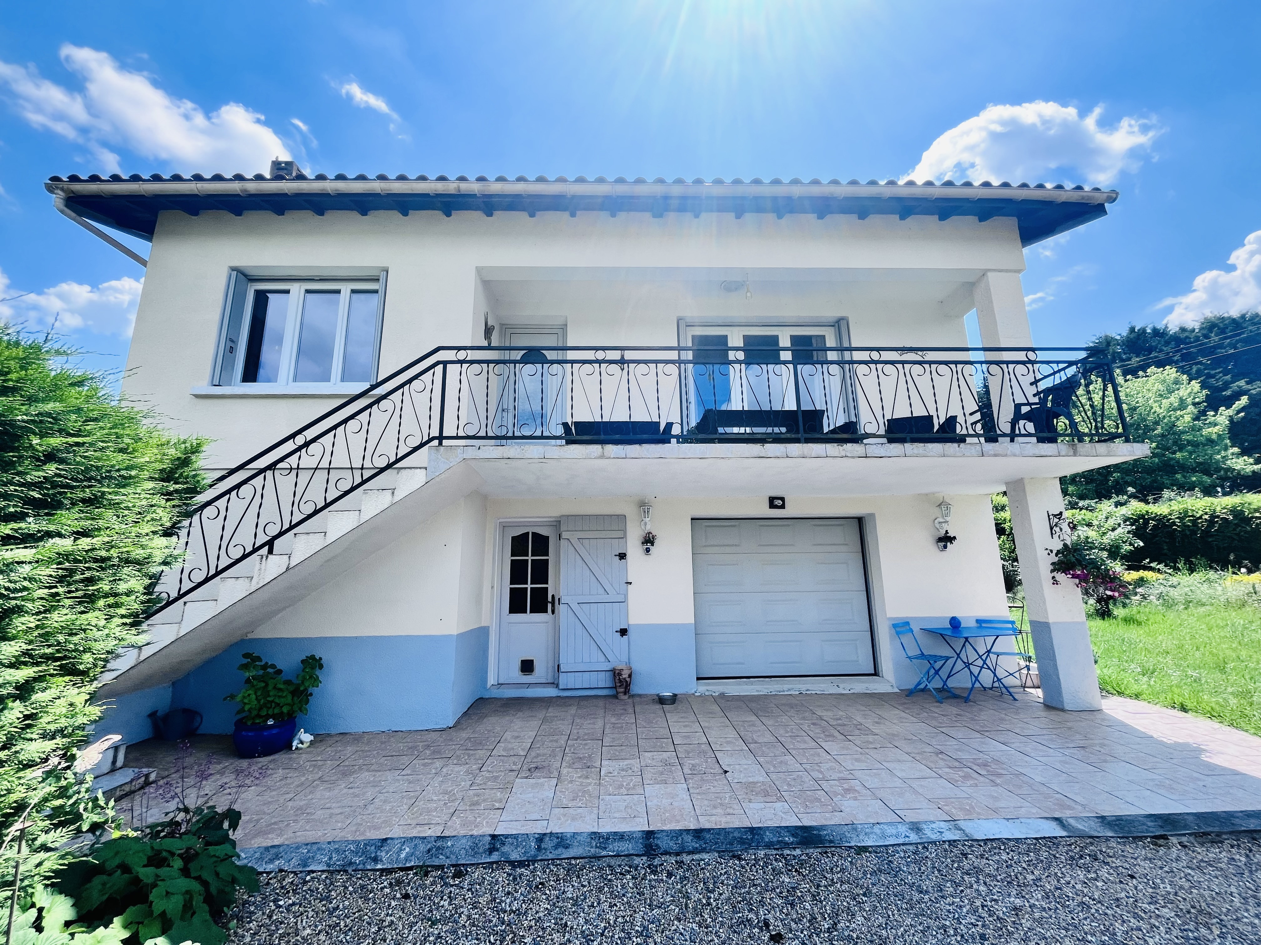 Well maintained, detached house with sous sol, situated a couple of minutes walk from the heart of Lauzun with its amenities. The property comprises of a kitchen, open plan living/dining room, 3 bedrooms, Shower room and WC and a large sous sol garage, the property benefits from double glazing throughout, insert chimney and fuel central heating, as well an enclosed garden and balcony