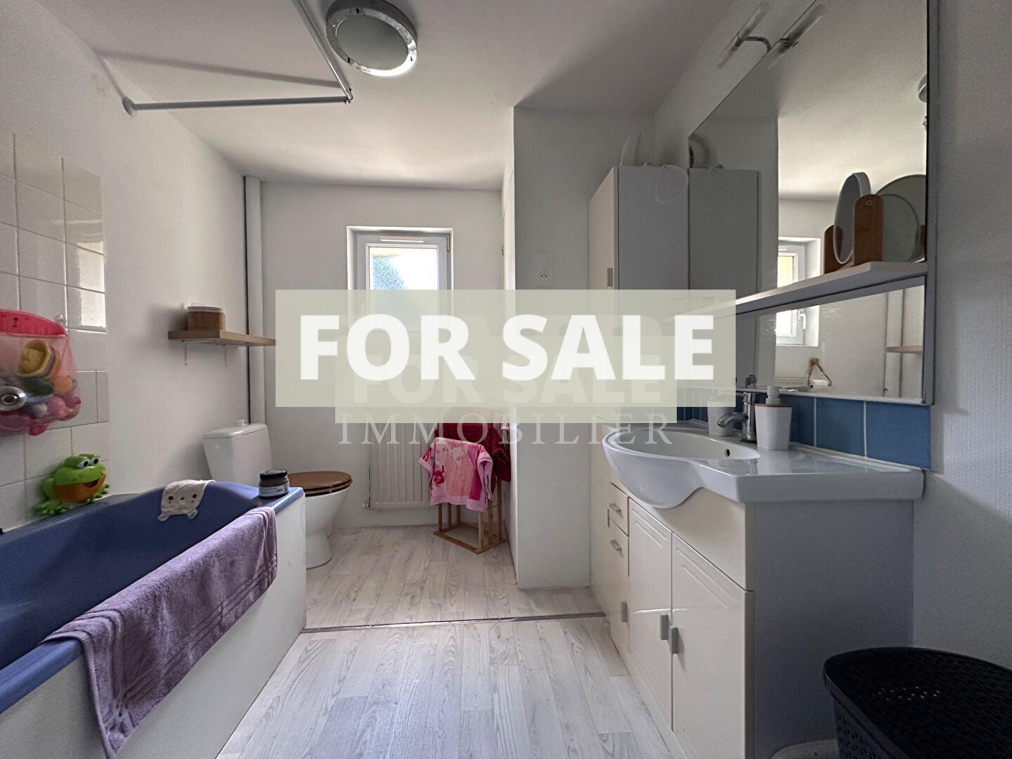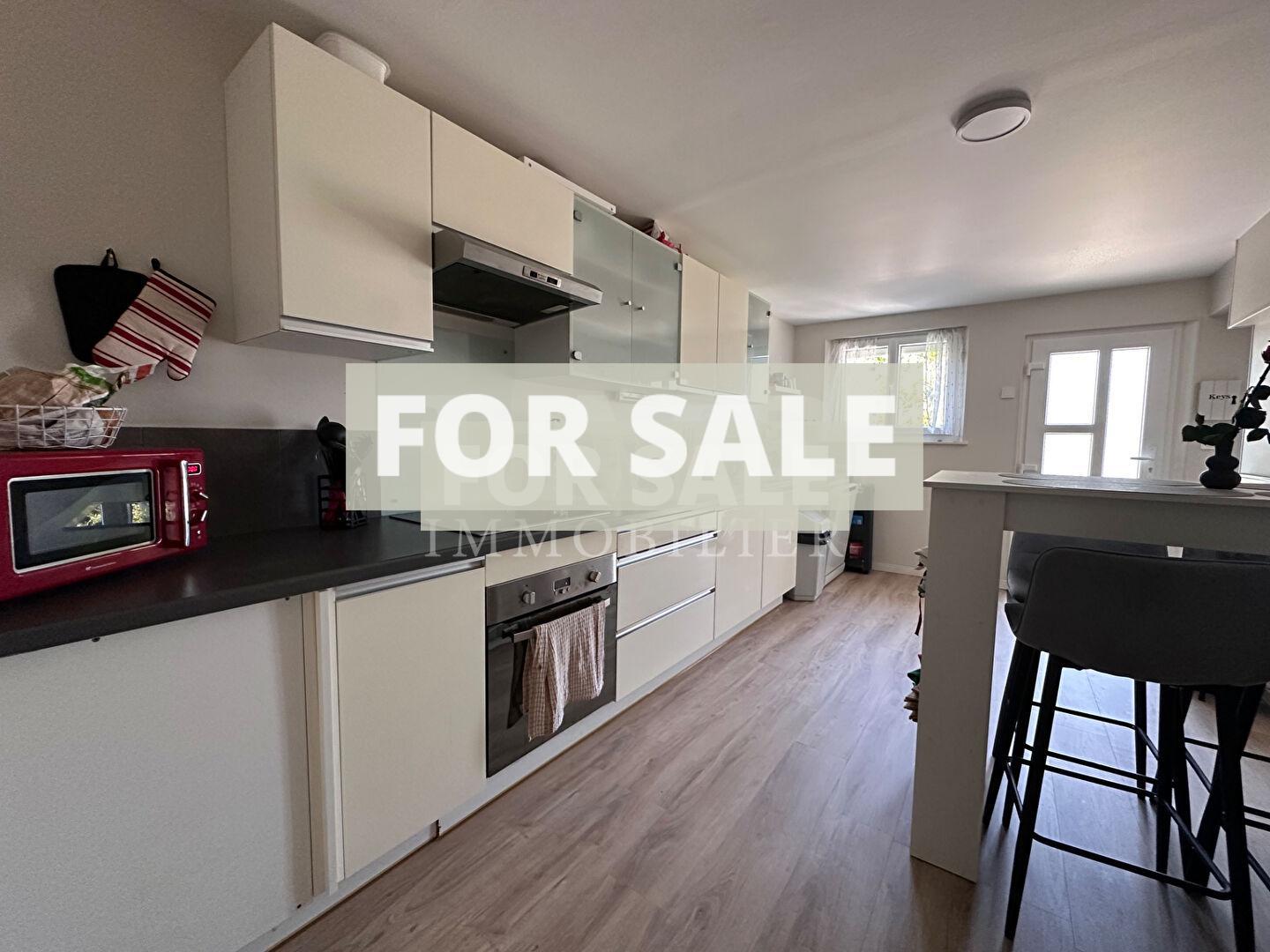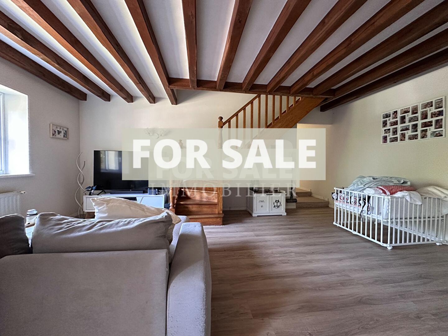 The first part of the house, completely renovated, offers on the ground floor a kitchen, a 40m² living/dining room, a bedroom, a laundry area with cupboards, a toilet, and a cellar.
