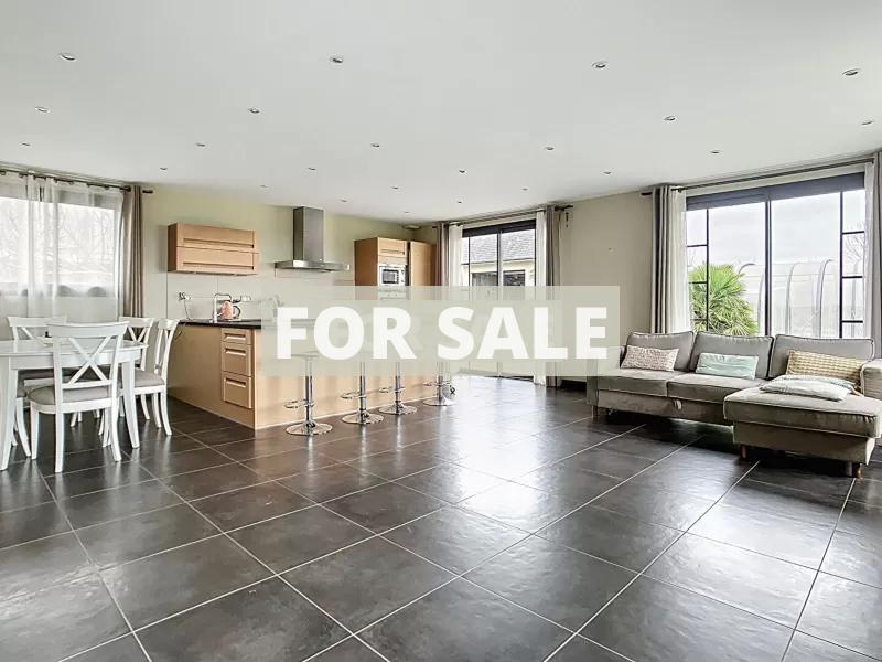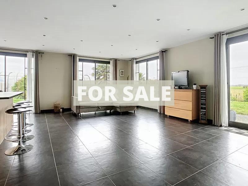 Contemporary house in Regnéville-sur-Mer, 125 m² of living space, on a 4,661 m² enclosed and landscaped plot. Located in a quiet area, this single-story house offers spacious rooms and comprehensive amenities: