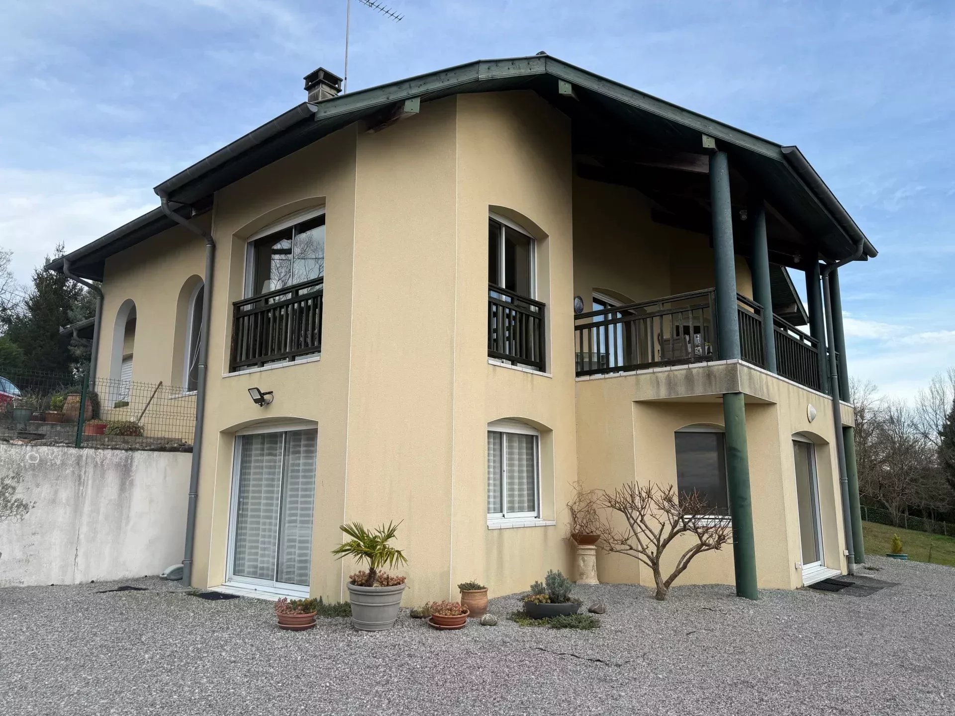 This beautiful architect-designed house, located in the hills above Sauveterre de Béarn, offers magnificent views of the Pyrenees and the surrounding countryside.