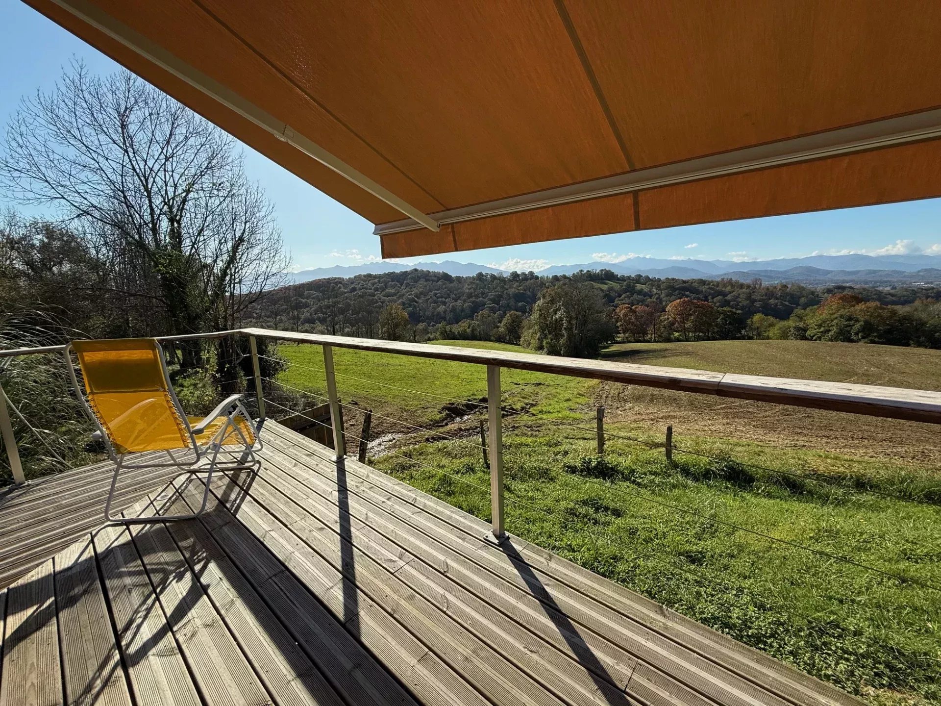This beautiful stone house, with independent Guest Gite and "Cabin", is set in a raised position on 3519m² of land, with a fabulous panoramic view of the Pyrenees.