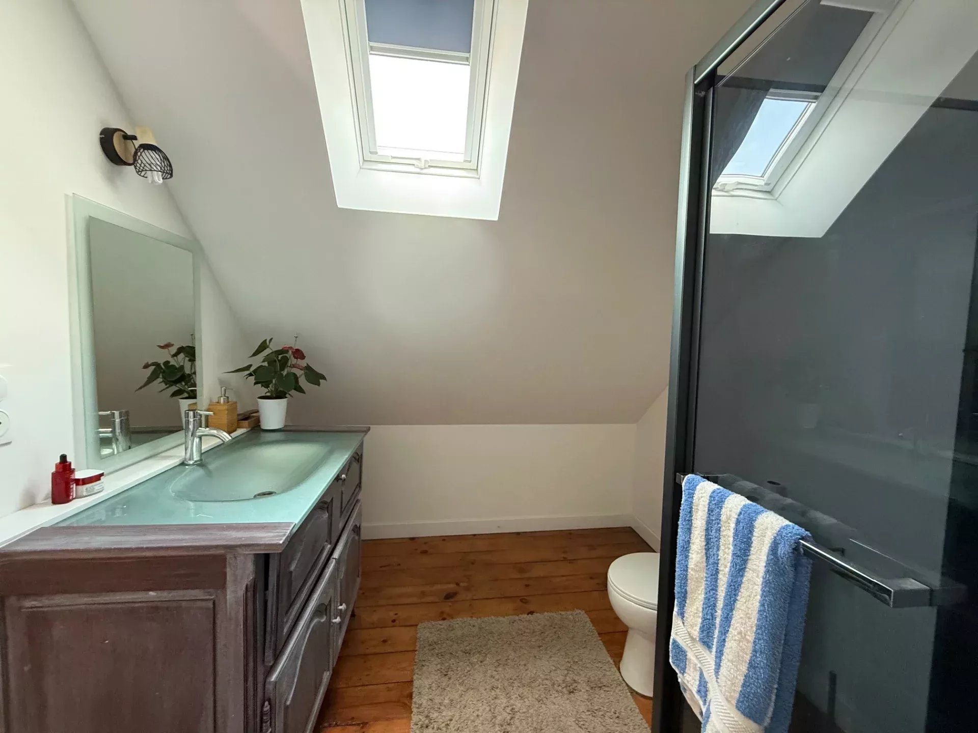 The property, very luminous and fully renovated, benefits from a new roof, double glazing, insulation with rock and glass wool, new electrics and plumbing, as well as the connection to the mains drainage.