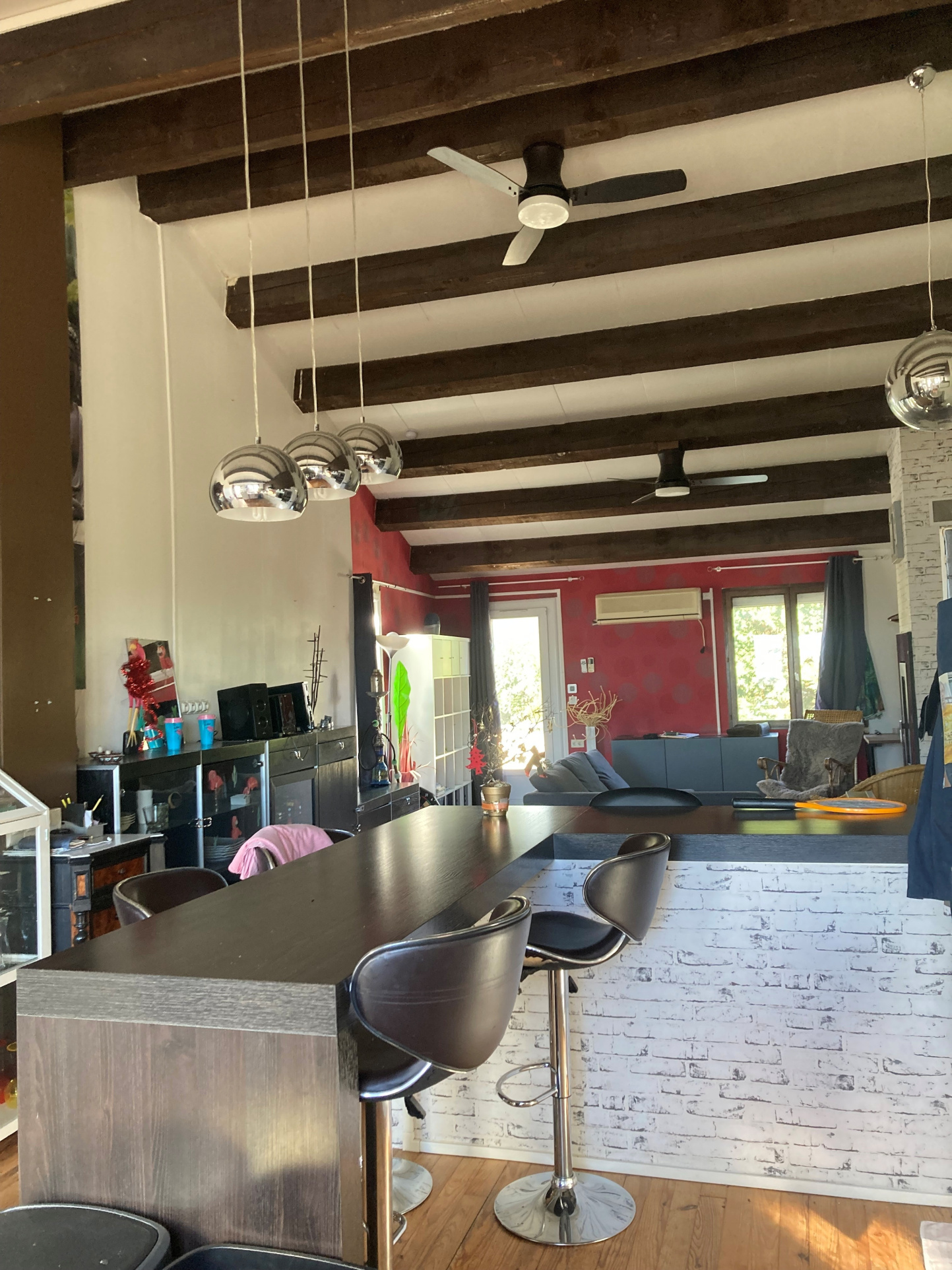 Located in a peaceful hamlet above the village of La Livinière, this well-maintained house is being sold furnished and boasts terraces with unobstructed views and a swimming pool. South-facing and with windows on both sides, the house is very bright. It features a beautiful 50m² living room with a nearly new fitted kitchen and two terraces.